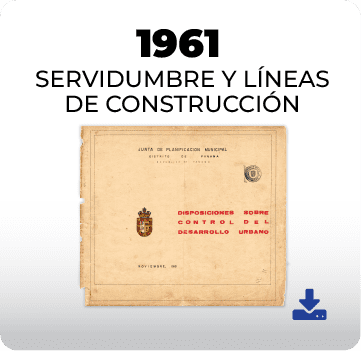 Los planos oficiales de servidumbres y líneas de construcción del distrito de Panamá, producidos entre 1961 y 2016, documentan la evolución de los criterios normativos que regulan el uso del suelo y la relación entre lo público y lo privado en el espacio urbano. Esta sección presenta una selección histórica de estos documentos, evidenciando los cambios en las disposiciones técnicas, los métodos de representación y las prioridades de ordenamiento territorial a lo largo del tiempo.